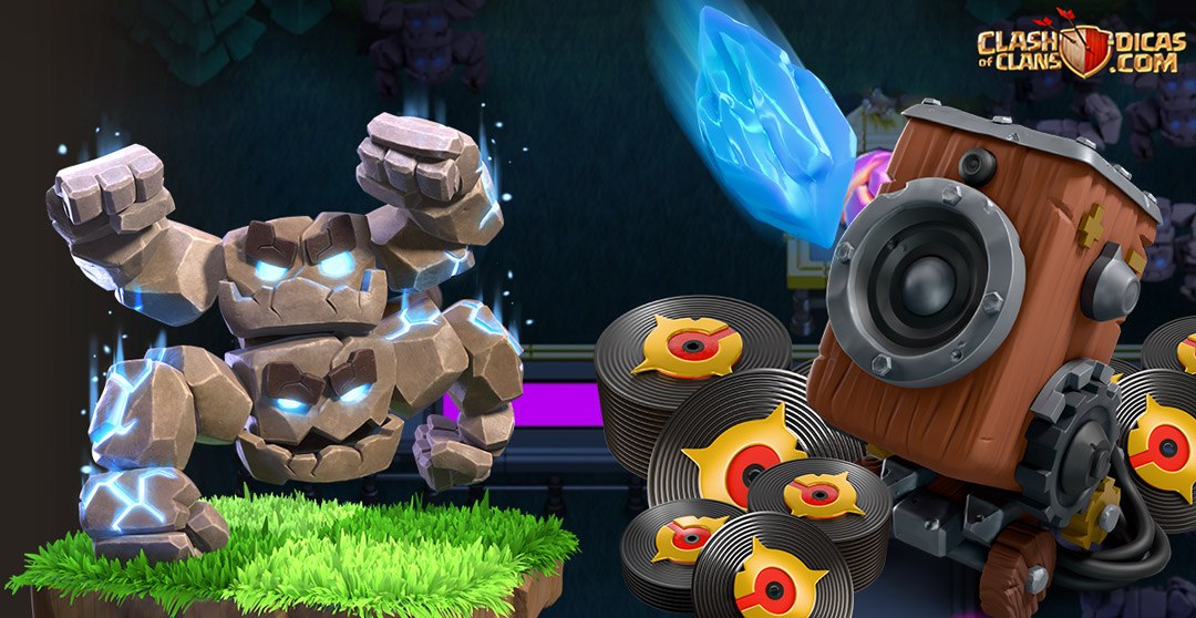 - ⚡ Golem Meteoro: A Nova Sensação Destrutiva: A estrela absoluta deste evento é o Golem Meteoro, uma tropa temporária que redefine o conceito de poder no Clash of Clans. Esta criatura cósmica surge da fusão de dois meteoritos que se unem durante a batalha, formando um gigante com impressionantes 15.000 pontos de vida e devastador poder de ataque.