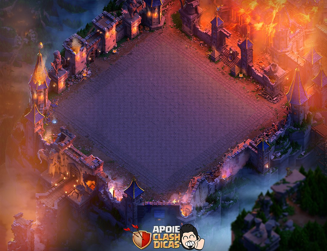 Esta é a mesma paisagem usada na recente animação “Get Your Revenge” da Supercell, trazendo aquela energia cinematográfica diretamente para suas guerras de clã.