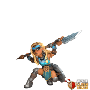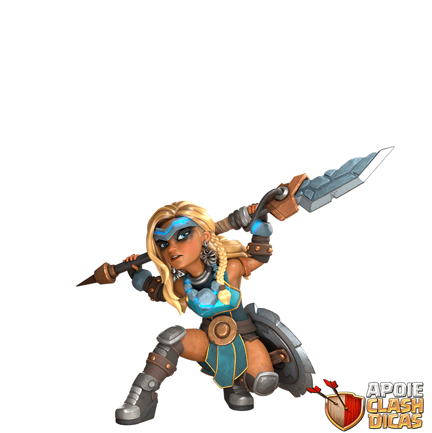 A Campeã Real adota visual de exploradora das terras áridas, com armadura leve em tons de cobre e equipamentos de sobrevivência. Seu escudo e lança recebem detalhes tribais e metais desgastados pelo tempo, perfeitos para enfrentar as adversidades do ambiente hostil.