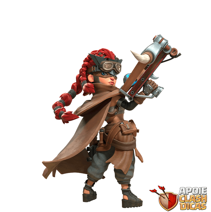 A Rainha Arqueira se transforma em uma guerreira das terras áridas, usando tons de marrom e vermelho com armadura de couro resistente e óculos de proteção contra tempestades de areia. Sua besta recebe detalhes metálicos oxidados, refletindo anos de sobrevivência no deserto hostil.