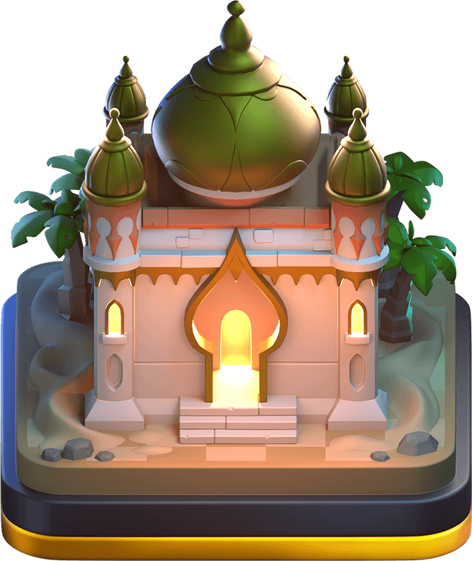 A nova temporada mergulha o Clash nas lendas árabes das Mil e Uma Noites, com Skins exóticas, paisagem deslumbrante e o Rei do Deserto liderando o Bilhete Dourado!