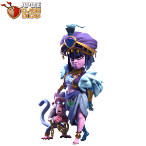 Usando um turbante cravejado de joia e um macaco de olhos hipnóticos ao seu lado, dominando o deserto com flechas mágicas.