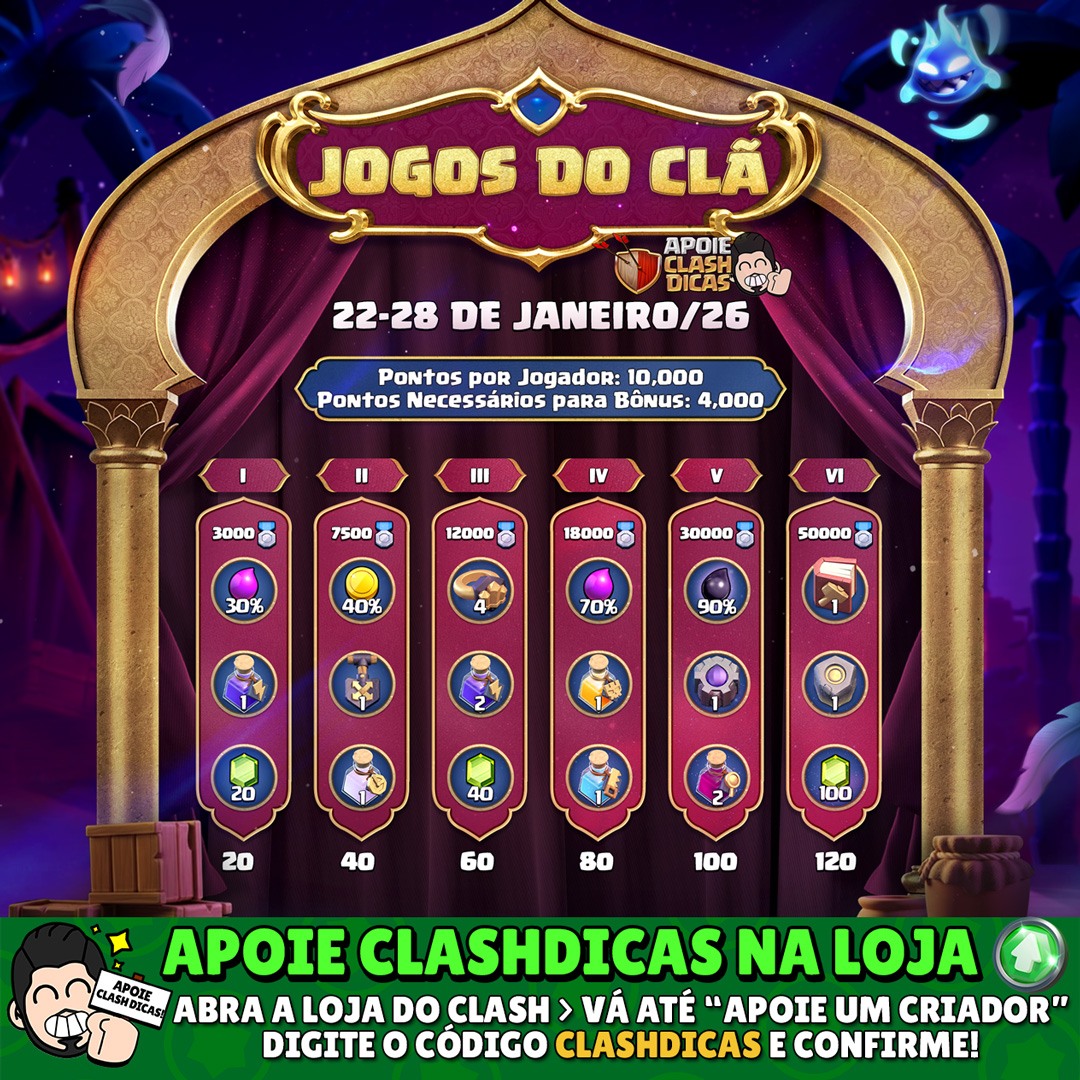 Lista de Recompensas dos Jogos do Clã de Janeiro/2026