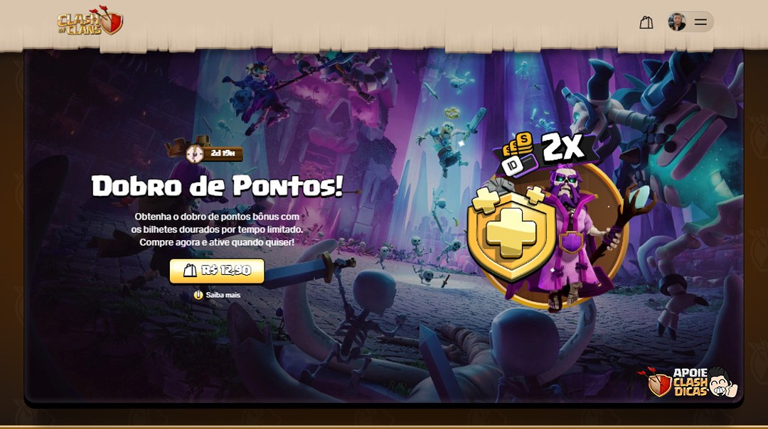 Para comprar o bilhete e ainda apoiar o site Clash Dicas, você pode acessar o link abaixo com o código de criador já aplicado. Corre pra garantir o seu:
